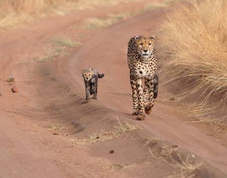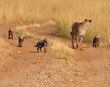 Gepardmødre har det hårdt, og dødeligheden blandt gepardunger er over 75-80%. Moderen jager alene og er de første mange måneder nødt til at gemme ungerne væk i det høje græs imens hun opsøger andre områder med lavt græs, hvor hun bedre kan komme på hold af sit bytte som Thompson gazeller og andet småvildt, som heller ikke bryder sig om det høje græs.