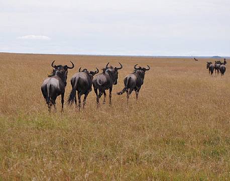 Halvanden million gnuer er lige ved grænsen mellem Kenya og Tanzania med deres 4 måneder gamle kalve, der er i gang med deres livs første vandring mod de saftige græsgange i Kenyas Masai Mara. Nogle ganske få af dem er gået i forvejen for at checke forholdene, Alle venter. Det kan ske når som helst....