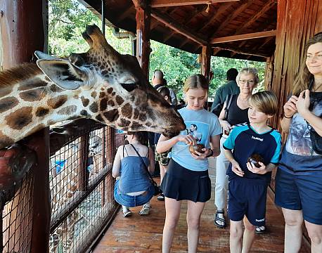 Vi kom tæt på giraffer på Giraffe Centre i Nairobi, hvor der var lejlighed til at håndfodre og lære noget om de store elegante dyr.