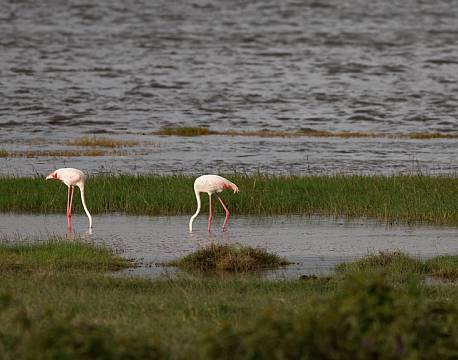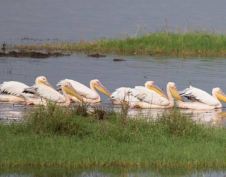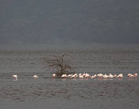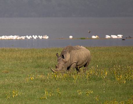 I Nakuru kom vi tæt på et ophidset han-næsehorn, da han galoperede tværs over vejen foran os, med sin hale oppe. Inden frokosten så vi også en del flamingoer og pelikaner.