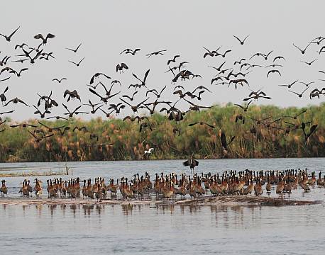Via Caprivi striben i Namibia med flere klassiske safarioplevelser og store afrikanske dyr fortsatte turen i hurtige både dybt ind i Botswanas Okavango delta. Her nød vi et par dage på og omringet af vandløb, laguner og floder i selskab med masser af fugle, krokodiller, flodheste og elefanter, mens løverne kun lod sig høre om natten og den lokale leopard nøjedes med at afsløre sin tilstedeværelse i form af fodspor i campen.