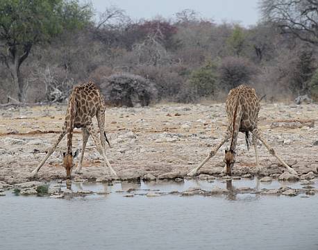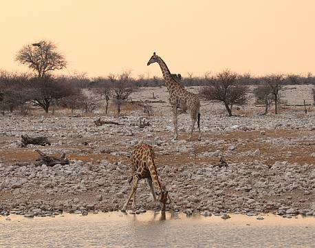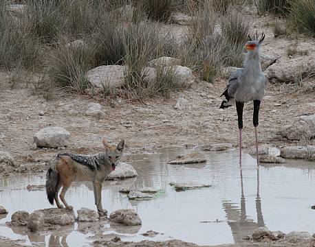 I Etosha oplevedes turens mest dyrerige safarier med masser af store dyr især omkring vandhullerne. Den hidtidige ”høst” af dyr blev her suppleret med både adskillige sorte og hvide næsehorn, mange giraffer og en enkelt sky leopard, så dermed havde vi allerede set de berømte ”Big Five” inkl. hele seks hanløver sammen, hvoraf tre var voksne og tre var unge, der var ved at udvikle manke. Plettede hyæner, zebraer, masser af smukke antiloper som f.eks. springbuk og gemsbok samt strudse blandt meget andet blev også set i Etosha.