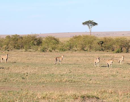 Safariens sidste to dage i Masai Mara var uden tvivl turens højdepunktet for alle. Allerede på vej ind i reservatet så vi adskillige løver, der bl.a. var ved at fortære deres bytte, en smukt spankulerende leopard helt tæt på bilerne, hele fem gepardhanner som holder sammen, hvilket er helt unikt, samt en stor flok elefanter ganske tæt ved bilerne. Så var vores safari i Masai Mara ligesom i gang! Selvom de fleste zebraer og gnuer var søgt mod syd til Serengeti, så bød den åbne græssavanne dog stadig på masser af dyr med bl.a. fine oplevelser af giraffer, antiloper, gazeller, gribbe, strudse m.m. samt masser af flodheste og krokodiller i Mara og Talek floderne. Alle var desuden med på et spændende besøg i en Masai landsby, mens ca. halvdelen havde en storslået og rolig tur i ballon over savannen.