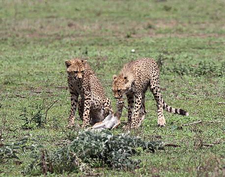 På vej ind i Serengeti nationalparken lagde vi vejen forbi savannen omkring Lake Ndutu, der bød på adskillige fine observationer af nogle af de store rovdyr. En gepardhun med fire små unger var et hit, mens en anden gepard med to større unger var en lidt mere barsk oplevelse. Moderen havde fanget en ung gazelle, som de to unge geparder ”legede” med i en øvelse på at blive gode jægere, men til sidst blev gazellen dog dræbt og spist.