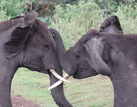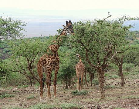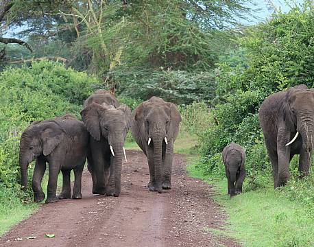 På vores første destination, Lake Manyara nationalparken, var det især tydeligt, at regnen gennem de seneste par år har været rigelig. Den høje vandstand i søen betød, at savannen ned mod søen stod under vand. Den frodige skov på højereliggende arealer langs søen var til gengæld en fin start på safarien, da den bød på et rigt liv af fugle og aber, ligesom turens første elefanter og antiloper var talrige.