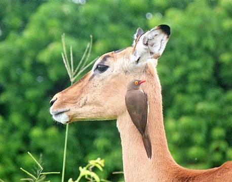 Et rigt fugleliv og også ”The big 5 (løve, næsehorn, elefant, bøffel og leopard).