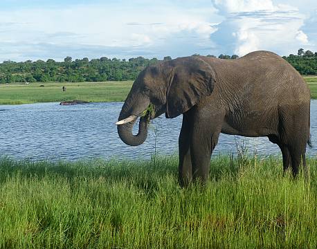 • Vandretur på Pepere Island med elefanter i horisonten.