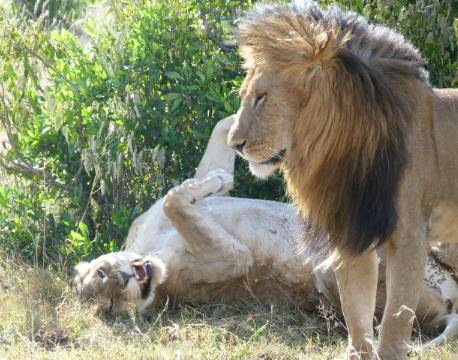 På de store sletter i Masai Mara, bød denne safari på mange løver, endda en han og en hun løve som var meget travlt optaget med at sørge for at bestanden kunne vokse.
