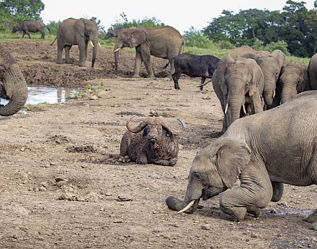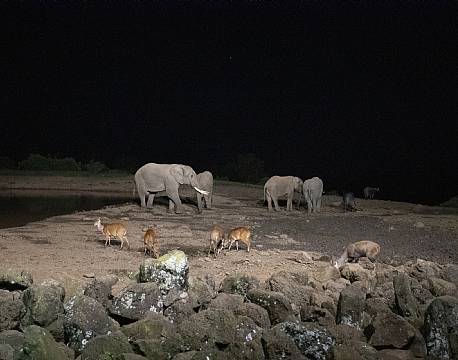 Så på én gang, samlet ved vandhullet, så vi masser af elefanter, bøfler, hyæner, buskbukke og vortesvin. Et sceneri, der var helt uvirkeligt, men var helt igennem virkeligt.