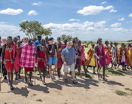 Et besøg på den nærliggende masailandsby vakte også stor begejstring. Alle gæsterne ønskede at besøge de stolte masaier. Alle var helt enige om, at det helt igennem var en helt fantastisk tur – også selvom det høje græs på savannen, gjorde det lidt svært at se alle dyrene og alle var meget overrasket over, hvor tæt vi faktisk kommer på de vilde dyr.