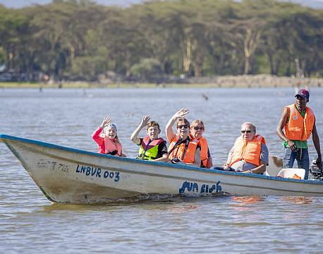 Lake Naivasha er altid et spændende sted for en bådtur. Her bydes med garanti på et rigt fugleliv, og flodhestene holder øje med os i vandkanten.
