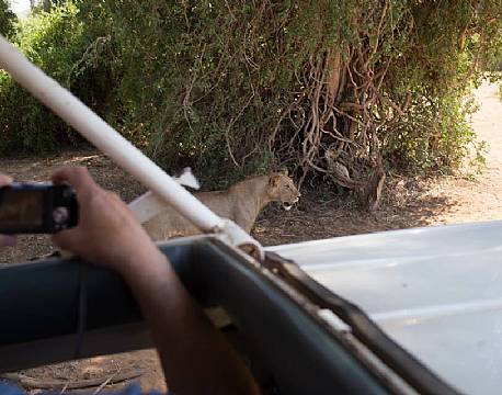 Vi er i det centrale Kenya. Her kører man rundt med en varm brise i ansigtet, imens helt utrolige ting sker omkring safari-bilen – kun ganske få meter væk.
