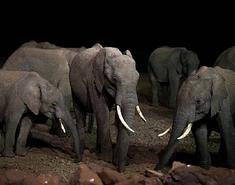 Midt i aftensmaden blev der meldt om elefanter foran hotellet, og der findes vel næppe en bedre undskyldning til at gribe sit kamera, og forlade maden