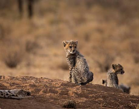 Fire gepardkillinger nyder aftensolen med deres mor.