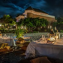 Mad, service, og betjening er i top og udsigten nydes fra luksustelte og campens udsøgte restaurant. Safarien indledes og afsluttes optimalt med fly til og fra savannen, og efterfølges med afslappende badeferie ved Det Indiske Ocean på det 5-stjernede Medina Palms, hvor der virkelig er kælet for detaljerne.