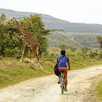 Videre til den nærliggende og smukke Naivasha sø, hvor I skal på en dejlig sejltur blandt flodheste og det rige fugleliv, mens den anden nærliggende nationalpark, Hells Gate, byder på et spektakulært cykelterræn, men hvor der også er mulighed for at stille cyklen for korte gåture i mere uvejsomt terræn.