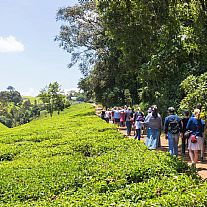 Herfra er der en spadseretur gennem den omkringliggende skov med farmens egen guide. Den kenyanske guide vil undervejs identificere planterne, og forklare hvordan de traditionelt er blevet brugt. Han vil også komme omkring, hvilke forhold der er nødvendige for produktion af te. Når man kommer forbi te samlerne i markerne, kan man også se, hvordan de fra hver plante plukker de to øverste blade og knoppen. Te har brug for godt med nedbør, hvilket der er rigeligt af i området, så der bliver høstet te hele året rundt. Når teen er plukket, bliver den sendt til fabrikkerne for at blive behandlet. Herfra bliver den solgt på det lokale og det internationale marked. Kenya er i dag verdens tredjestørste producent af te kun overgået af Sri Lanka og Indien. På turen gennem skoven skal man huske at holde øje med colobusaberne, der bor her. Som afslutning på rundvisningen kommer man igennem de smukke haver, som er hjem for et rigt udvalg af farvestrålende blomster og tropiske fugle.
