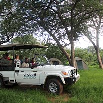 Der er indkvartering i 2-personers campingtelte, der er opslået direkte i naturen og med savannens lyde som nærmeste nabo. Game drive (safarikørsel) i åben 4-hjulstrukken bil, bådcruise på Chobe floden blandt fugle, flodheste, elefanter og bøfler, der søger til floden for at drikke, men også køle sig i vandet. Elefanterne ses ofte svømme ud til de grønne flodsletter, hvor de æder det grønne græs.