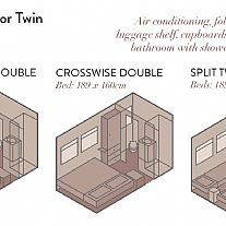 Gold kupéerne er på ca. 7 m2 og har enten en dobbeltseng eller to enkeltsenge. Kupéer med dobbeltseng findes i to versioner, hvor sengen i den ene vender på langs af kørselsretningen (lengthways) og er 189 cm bred, mens sengen i den anden version vender på tværs af kørselsretningen (crosswise) og er lidt smallere med 160 cm, men til gengæld giver lidt mere gulvplads. Kupéen har aircondition, sammenklappeligt skrivebord, bagagehylder, et skab med hylder, bøjlestang og bøjler, safebox og eget badeværelse med bruser, toilet og håndvask.