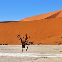 Højdepunktet på rejsen må være en to-dages udflugt dybt inde i Namibørkenen med det imponerende Sossuvlei og Deadvlei samt kløftet Sesriem. Der er også indlagt safari i den berømte og dyrerige Etosha National Park med gode chancer for at se nogle af Afrikas store og ikoniske dyr.