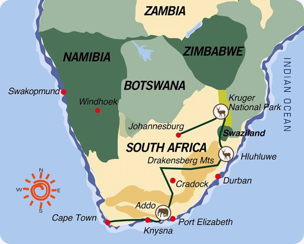 Turen gennemføres med erfarne engelsktalende rejseledere, der er uddannede guider og har stort kendskab til Sydafrikas natur og dyreliv. Dette gælder selvfølgelig både på safarien i Kruger nationalparken og resten af rejsen igennem Sydafrika.