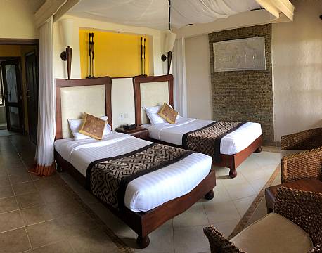 Man bor i dejlige værelser på Ol Tukai. Alle i en relativ tæt afstand til hovedbygningen, hvor man finder både restaurant, bar, massagerum og en swimmingpool tæt derved.