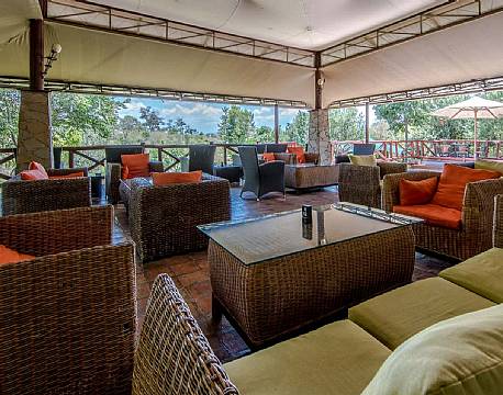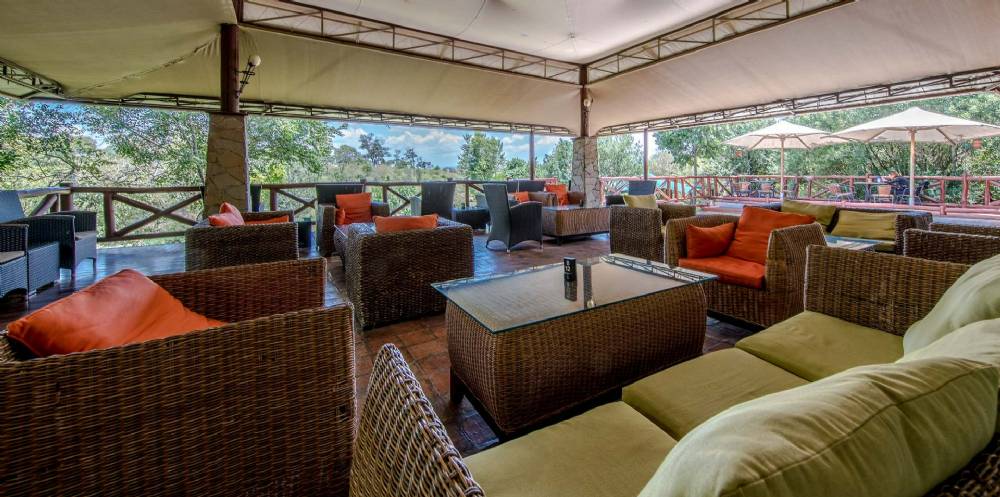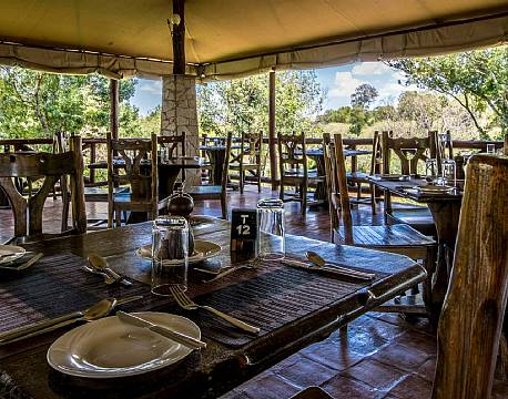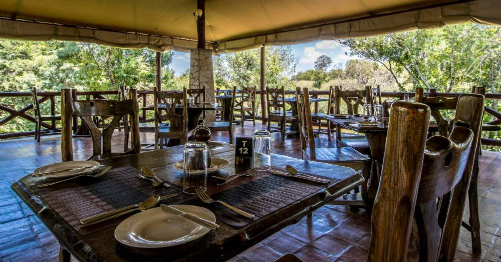 Restauranten åbner sig op mod Mara floden, hvor der jævnligt ses og høres flodheste, ligesom krokodiller ofte ses slappe af på flodbredden. Om aftenen tændes der bål på pladsen foran restauranten, hvorfra man kan nyde udsigten til floden og dagens sidste solstråler, mens man nyder en drink og snakker om dagens mange oplevelser.