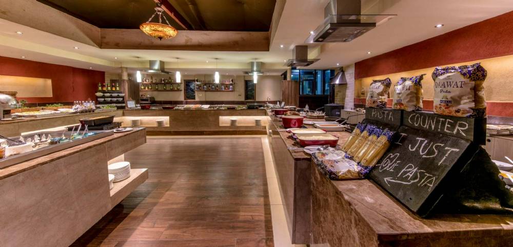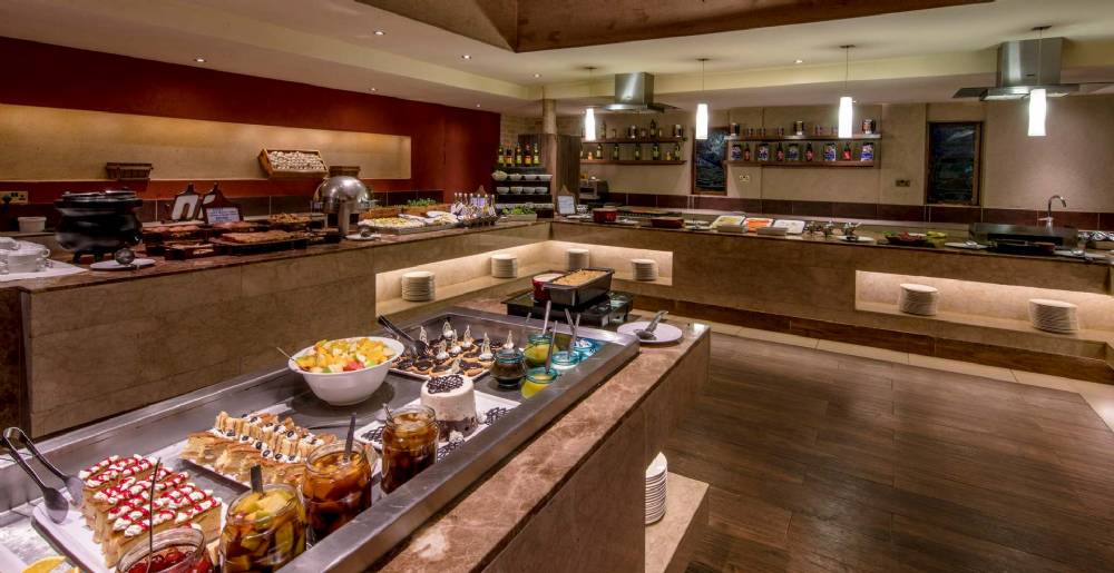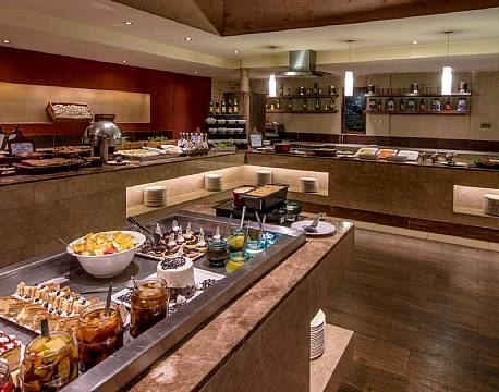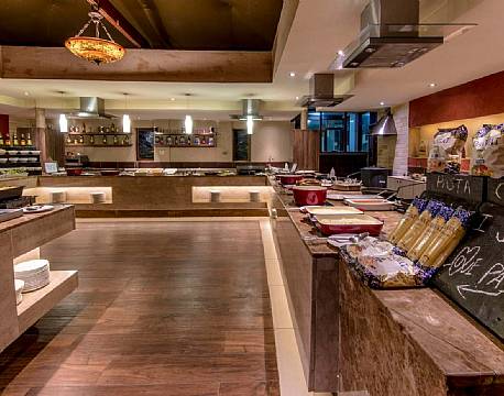I den hyggelige restaurant serveres der et bredt udvalg af lækre retter fra det internationale over det orientalske til det afrikanske køkken.