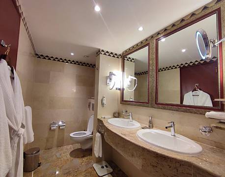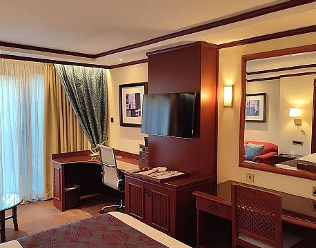 Værelserne og suiterne på hotellet er indrettet med sans for detaljer, og kombinerer klassisk, afrikansk indretning med moderne bekvemmeligheder. Uanset om du bor i et elegant standardværelse eller opgraderer til en rummelig suite, får du adgang til alt, hvad der hører til et ophold i absolut komfort – fra aircondition, Wi-Fi og fladskærms-TV til luksuriøse badeværelser og skøn udsigt til byens skyline eller hotellets grønne haver. Morgenmaden er altid inkluderet og serveres som en overdådig buffet med både lokale og internationale favoritter.