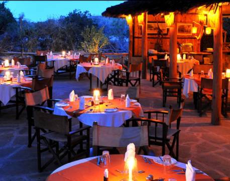 Maden er en oplevelse i sig selv. Campens kokke tilbereder velsmagende retter med friske råvarer, og du vil hurtigt glemme, at du befinder dig midt i den afrikanske bush. Frokosten serveres ofte under et imponerende, over 200 år gammelt tamarindtræ med udsigt til vandhullet, mens aftensmaden nydes i restaurantområdet – som regel efterfulgt af drinks omkring bålet under den afrikanske stjernehimmel. For dem, der ønsker noget helt særligt, kan private middage og bush dinners arrangeres.