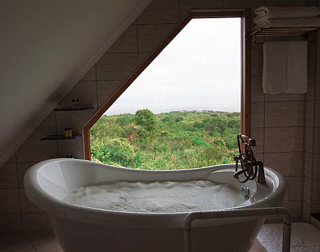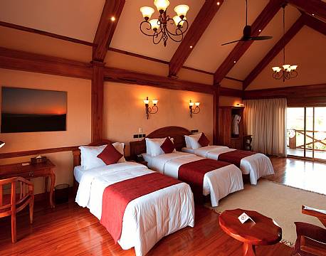 Lodgen tilbyder i alt 26 værelser – fordelt på 8 værelser og 6 rummelige bungalows, hvoraf hver bungalow rummer tre separate værelser. Alle værelser og bungalows vender mod krateret og har en privat balkon, så man kan nyde udsigten.