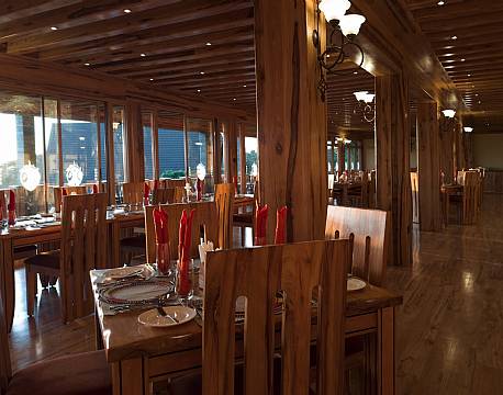 Fællesområderne er ligesom værelserne opbygget omkring udsigten. Restauranten og baren har direkte kraterudsigt og skaber en stemningsfuld ramme for måltider og afslappende stunder. Udsigtsterrassen og loungen er oplagte steder at nyde solopgangen og tilværelsen, mens lodgens veludstyrede fitnessrum giver mulighed for fysisk aktivitet.