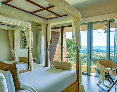 De elegante værelser, der er flot udsmykket med inspiration fra de lokale masaiers traditioner, er alle store og komfortable, og de har en skøn terrasse/balkon med udsigt over de smukke omgivelser.