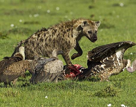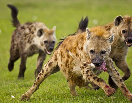 Hyænen er et Afrikas mest udbredte rovdyr og lever især på de store græsklædte savanner, hvor de forsøger af opsnuse bl.a. døde dyr. Det karakteristiske grin er nu ikke sådan at spøge med og slet ikke noget at grine ad. Hyænen griner nemlig ikke, men giver derimod udtryk for deres ophidselse i en anspændt situation, såsom når løverne skal frarøves deres bytte eller når en hyæner underkaster sig et andet individ i klanen.