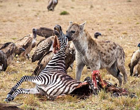 En anden meget gængs opfattelse er, at hyænen primært æder ådsler og kadavere, hvilket til dels også er sandt og har givet den kælenavnet som savannens skraldemand.