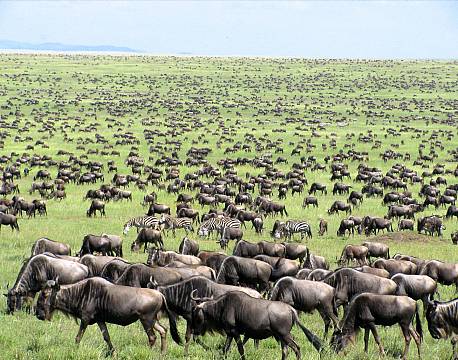 ”Den store gnuvandring” er ca. 1 million gnuer med følgeskab af ca. 200.000 zebraer, godt 300.000 Thomsons gazeller og over 100.000 Grants gazeller, der vandrer op mod 3000 km. om året i en evig cirkelvandring mellem Serengeti i Tanzania og Masai Mara i Kenya. Cirklen begynder i maj i den sydlige del af Serengeti. Dyrene vandrer mod nord/nordvest og når frem til Masai Mara i juli. Her bliver de til oktober, hvor de returnerer til Serengeti. Cirklen sluttes, og det hele kan begynde forfra.