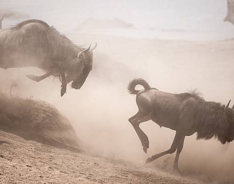 Under opholdet i Masai Mara nyder gnuerne ikke bare godt af de rigelige mængder af frisk græs, de parrer sig også, så kimen til en ny generation af gnuer bliver lagt.