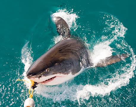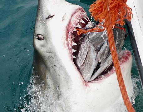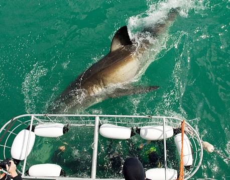 Fra dækket af skibet har man desuden mulighed for at se og fotografere det berømte tandsæt, når hajen angriber en træplade med form som en pelssæl, der kastes ud foran den og hales ind igen i en snor. Man kan altså få en stor oplevelse ved at tage på hajsafari, selvom man ikke har lyst til at gå ned i buret.
