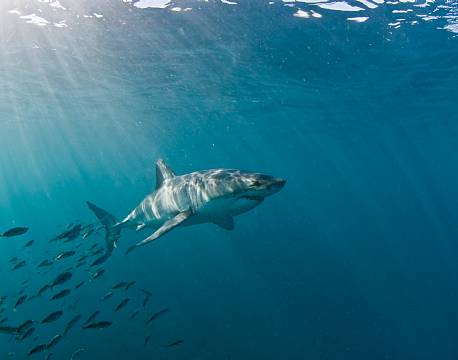 De absolut bedste chancer for at se en stor hvid haj er langs Sydafrikas kyst mellem Port Elizabeth og Cape Town, der har en stor bestand, som i øvrigt har vist sig at hænge sammen med bestanden i det vestlige Australien, hvorimellem nogle individer vandrer tværs over Det Indiske Ocean.