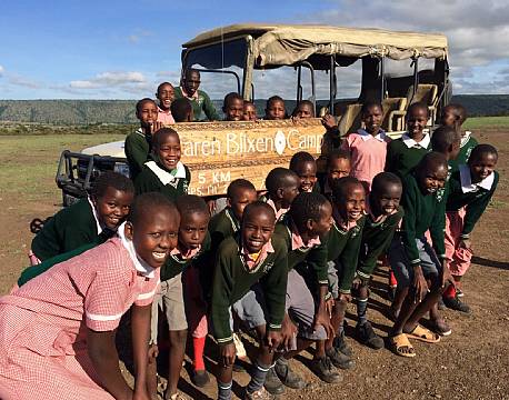 I går var børnene fra Mararienda skolen på safari, hvor vores guider fra Karen Blixen Campen lærte børnene om dyrelivet.