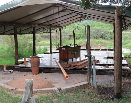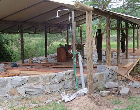 Der bliver knoklet i alle hjørner på Karen Blixen Camp i forbindelse med renoveringen. De første gæster kommer den 28. maj.