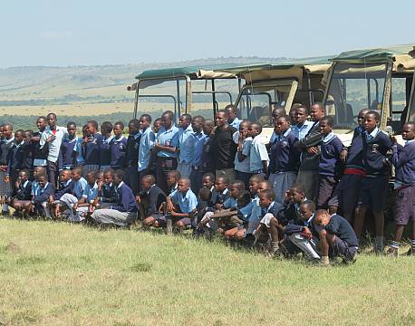 Efter at have set flodhestene og krokodillerne ved Mara floden var det en flok glade børn, der returnerede til skolen til sen frokost.