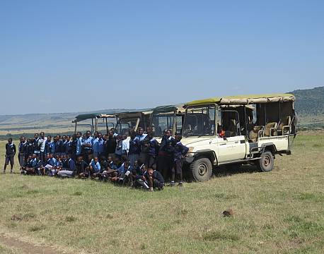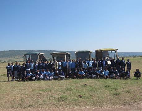 Chauffører/guiderne Daniel, Duncan, Twala og Jackson fra Karen Blixen Camp havde den ære at tage elever fra Mara Rianta Primary School Wildlife Club på et morgen game drive den 11. juni i Mara North Conservancy.
