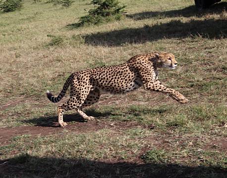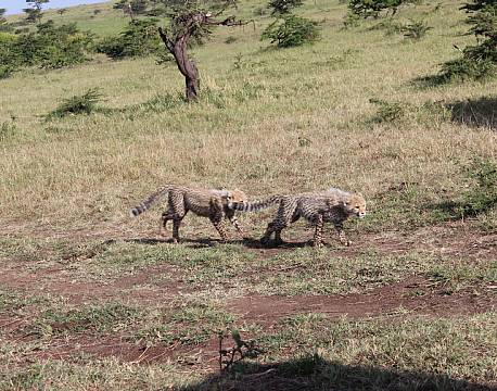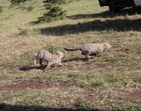 Tidlig morgen gamedrive hvor vore to chauffører Daniel og Duncan "stødte" på denne hungepard med hendes to meget legesyge unger på ca. 3 måneder.