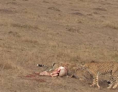 På denne årets sidste dag blev vi velsignet med regnbyger, en leopardjagt, "glade" løver, sundowner og en vidunderlig nytårsmiddag, hvor der var dækker op i vores hovedbygning.