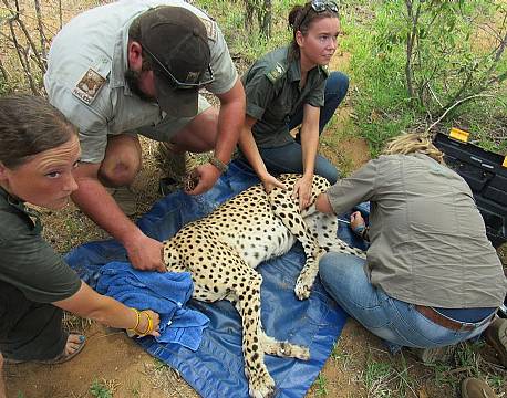 With the hectic treatment of the elephant we also had a report of a cheetah on our reserve with a very tight collar that wasn’t functional anymore. Cheetahs often move vast distances and don’t stay on the reserve. Therefor we don’t know where they come from or for how much longer they are staying in our area. That means we had to act fast. The day after the cheetah was first sighted, he was relocated again. We called in the vet right away. Once darted, the collar was removed. We also noticed a broken toe and a necrotic wound on his back. All wound were treated and an anti-biotic was given for maximum recovery. In the next couple of days the lodges have seen the cheetah and has send photos. He is doing very well and looking very healthy! And for now he is enjoying his time close to the waterhole in our reserve. We are always grateful to have such beautiful animals passing through our reserve, as cheetah numbers are declining fast and listed as currently vulnerable. Therefor taking care of every single individual matters for the survival of a species.