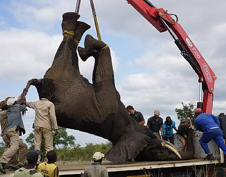 Due a massive hail storm earlier this year together with the the persisting droughts the elephants are traveling further to look for better food and water resources. Unfortunately outside of the borders of our reserve elephants are not safe. As they travelled west from Kruger National Park towards the western boundary fence of the Greater Kruger Park, they found a place to break through the fence onto neighboring farm lands. The two elephants ended up on a private nature reserve close to the Drakensberg mountains. Assessing the situation with this reserve we decided to see if they would integrate and find their place at their new found home. Unfortunately they were unable to settle peacefully with the local elephant herds and became restless and distressed. This caused for trouble with the neighboring farmlands. They issued for shooting permits to put the two elephants down. We would not allow that to happen so we had to make a decision as fast as possible. We decided for a risky and expensive operation to move the elephants back to their original home, in Kruger National Park. This is a complex operation which involves a lot of people from different professions. So after organising wildlife vet team, wildlife transportation team, flying team, state official, relocation team, trackers and more, we also had to apply for a permit to relocate our animals. After a couple of weeks we had the premit in our hands! The vets darted the first animal, waited for the medication to take effect and the capture and relocation team then loaded the 5 tons heavy pachyderm onto the truck with a crane. There was no room for mistakes. After the elephant was safely secured on the truck the journey to Balule began. We are sure that this convoy attracted a lot of interesting looks on the road! The release of the elephant went perfect and according to plan. After he found his bearing he slowly started moving back into the reserve. A couple of days later the same operation was conducted to get the second elephant back. And luckily this operation went perfectly smooth as well! We hope both elephants will find a better place to live than in neighboring farm lands!