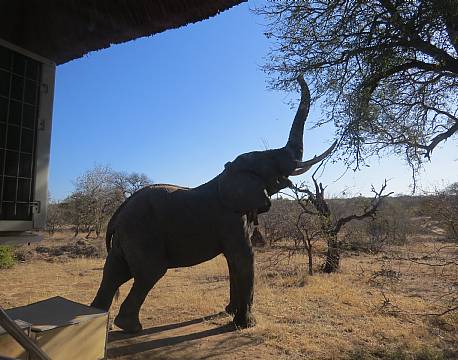 It seem to be stressful times for elephants at the moment, and sometimes that means that elephants clash with each other. With great sadness we heard that one of our most well-known elephant, Shoshangane was found dead in the reserve. A couple of weeks earlier whilst Shoshangane was in musth (the time that they are trying to find a mate and testosterone is extremely high), he fought with another bull. This is not uncommon, but little did we know that Shoshangane got hurt worse from the fight than we thought and succumb to his injuries. The whole reserve and all visitors who have ever met Shosh were heartbroken by the news. He was a truly gentle giant and like to visit us regularly. As he would feed calmly a couple of meters away from us we truly felt connected with him. His massive stature and impressive tusks were a definite eye catcher and his relaxed nature was something that anyone that has ever had the chance to meet him will never forget. One special elephant that we will never forget! Rest in peace our pachyderm friend!
