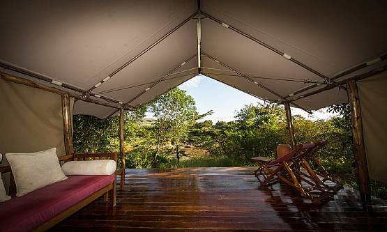Safariteltene på Karen Blixen Camp er store og rummelige, og ligger alle lige ned til den brusende Mara flod. På safaricampen kan man virkeligt mærke, at der er blevet kælet for detaljerne, og de er i høj grad lykkedes med at kombinere luksus og moderne bekvemmelighed med afrikansk hjertevarme og safari ”som i de gode gamle dage”. Serviceniveauet på safaricampen følger perfekt i tråd med de luksuriøse omgivelser, og gæster på Karen Blixen Camp mødes af velkomne smil og en serviceminded ånd blandt hele personalet.